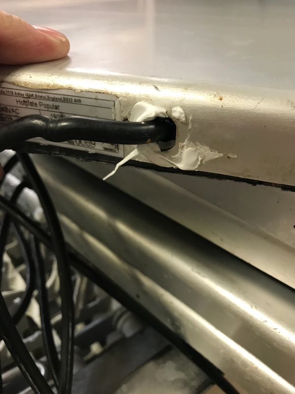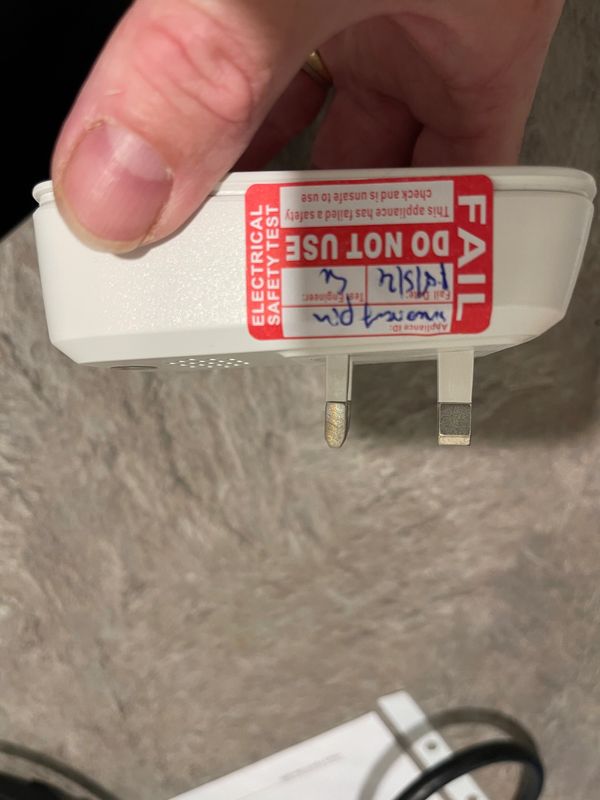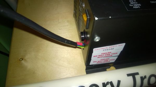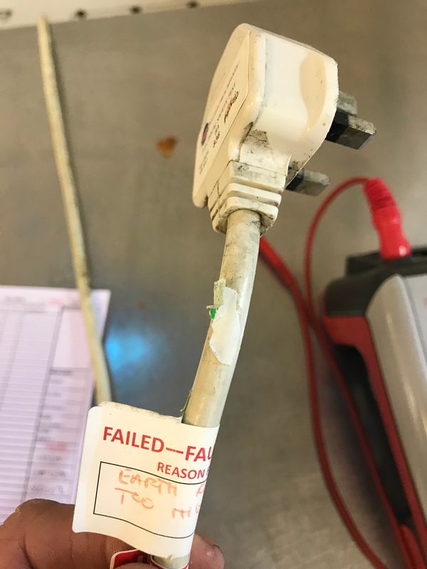 This item was found in use, a year on having failed from the previous Pat test, it should have been removed and replaced.