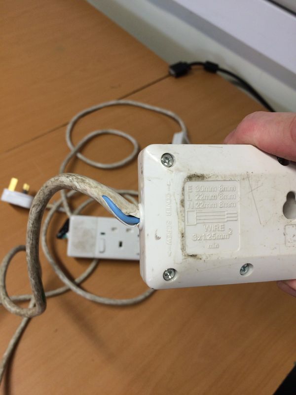 Also look out for very lightweight or thin cables, flimsy plastic cases around power supplies, wrong coloured wiring and badly connected terminals in plugs and extention leads.
